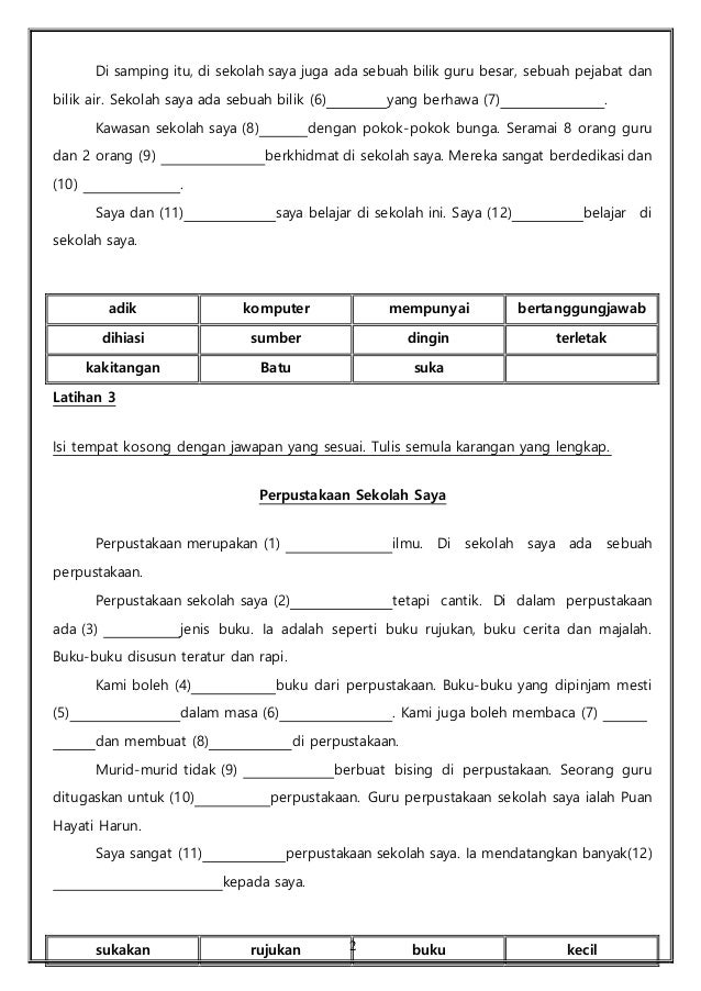 2 Membaca dengan kuat petikan teks bertajuk Tali Pinggang Keledar dengan sebutan yang betul dan intonasi yang tepat. Keperihalan Latihan Karangan Sekolah Rendah. Setiap anggota masyarakat harus menjadikan membaca sebagai satu amalan.